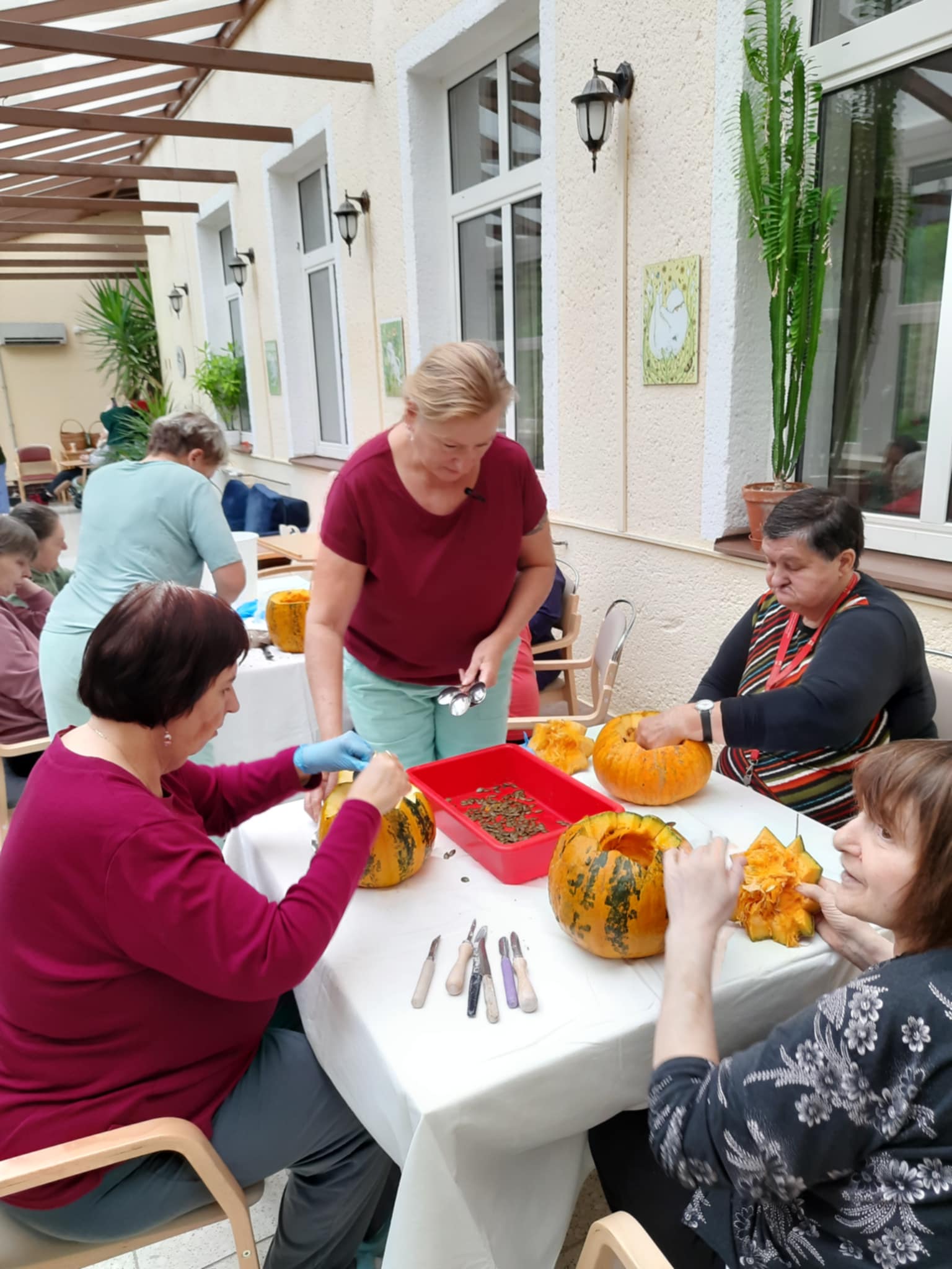 K neodmyslitelné podzimní tradici u nás patří vyřezávání dýní, proto si aktivizační pracovníci nachystali dýně a celé dopoledne se u nás vyřezávalo. Víte, jak tradice vyřezávání dýní vznikla?