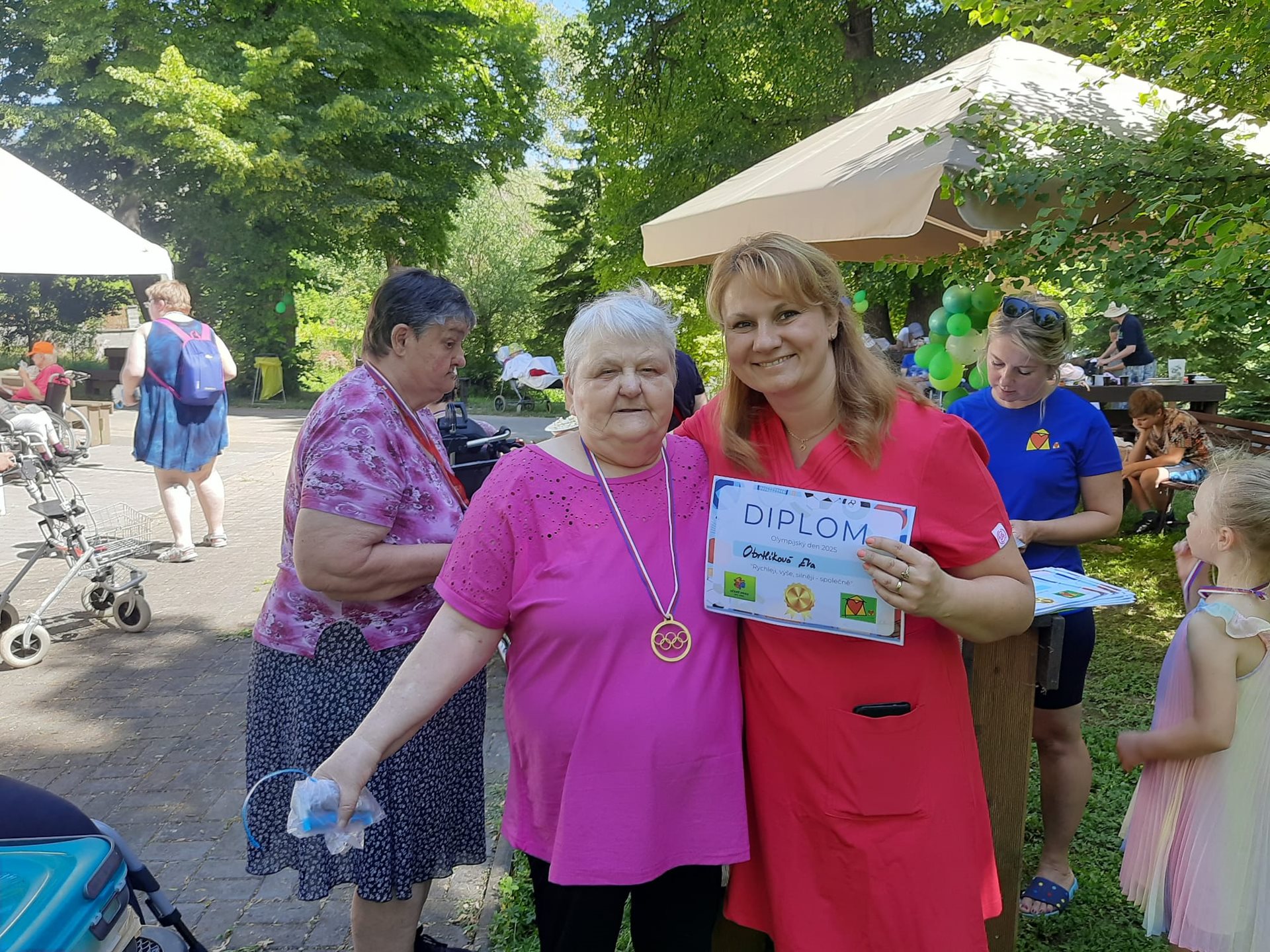 V domově jsme pro naše klientky a děti z Učení hrou připravili první Olympijské hry. Disciplíny byly přizpůsobeny, aby vyhovovaly jak našim klientům, tak aby je zvládly i děti. Na začátku akce nám děti předvedly krásné taneční vystoupení a pak už jsme se vrhli na sportování. Všichni klienti i děti dostali diplom, olympijskou medaili a drobný balíček.