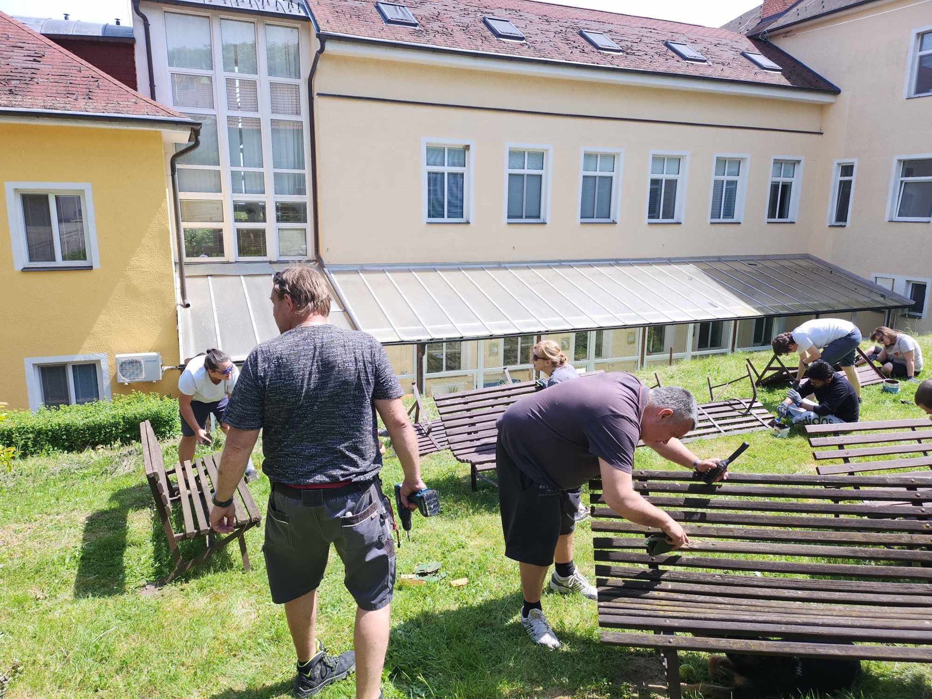 O víkendu k nám zavítali naši dlouholetí přátelé ze společnosti Kyndryl, aby nám pomohli s činnostmi, na které v průběhu roku nemám dostatek času a tím pádem je zanedbáváme. Společnými silami, jsem obrousili a nabarvili lavičky v parku, srovnali povrch v parku a revitalizovali skalku při vstupu do areálu. Všem zúčastněným moc děkujeme za pomoc a těšíme se na příště.
